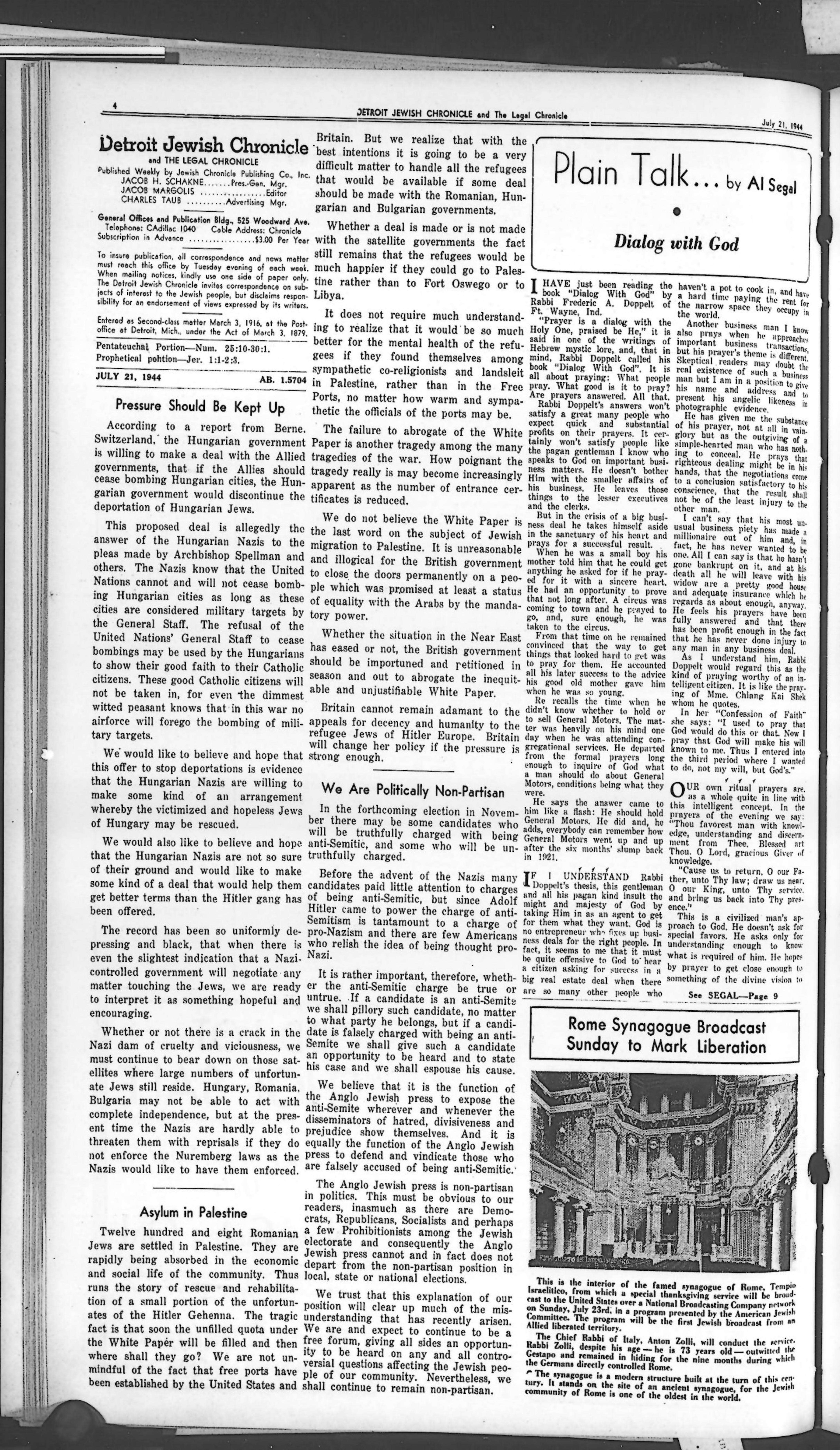 The Detroit Jewish Chronicle invites correspondence on sub-