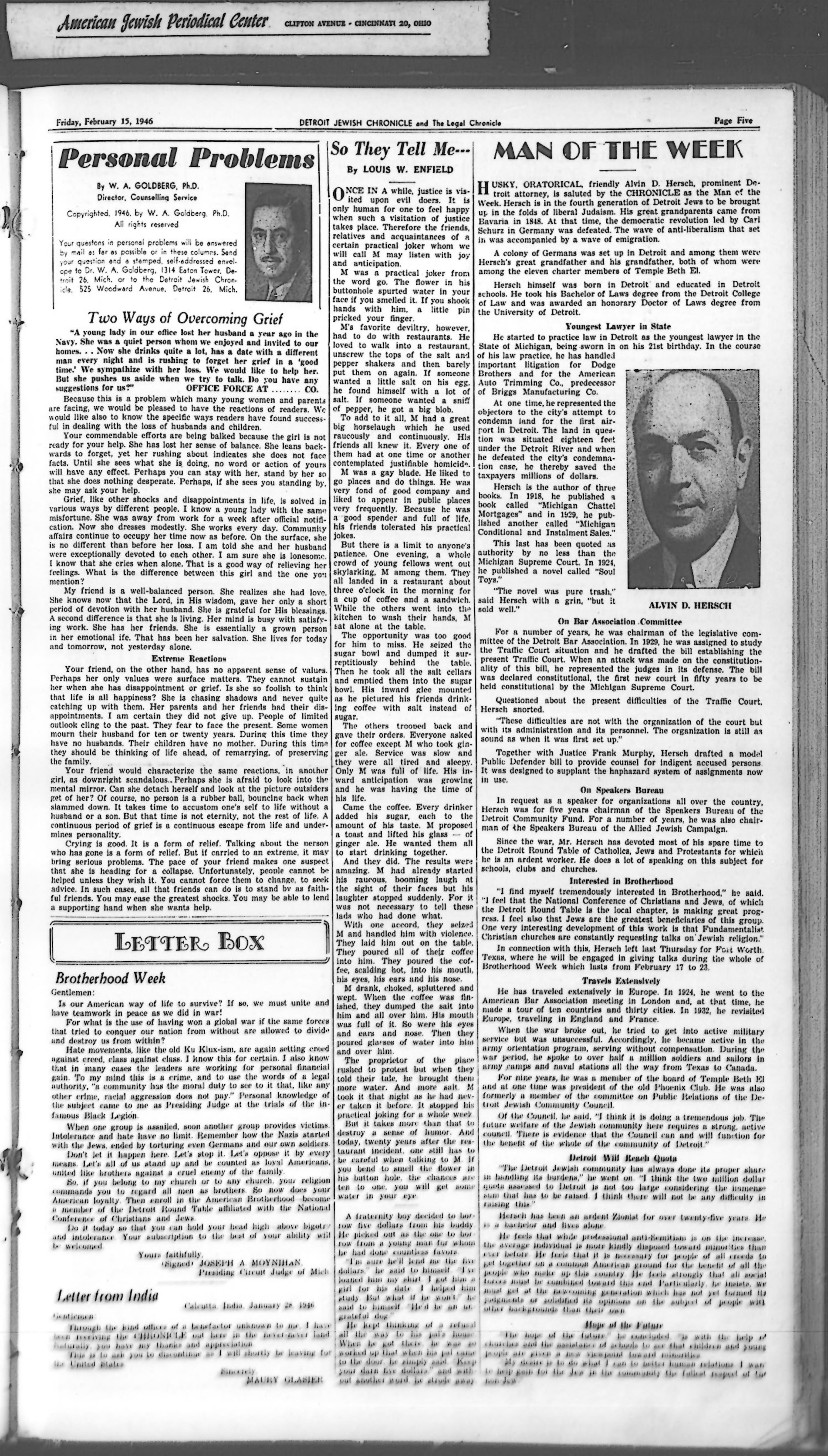 beet 26, Mich. or to the Detroit Jewish Chron.