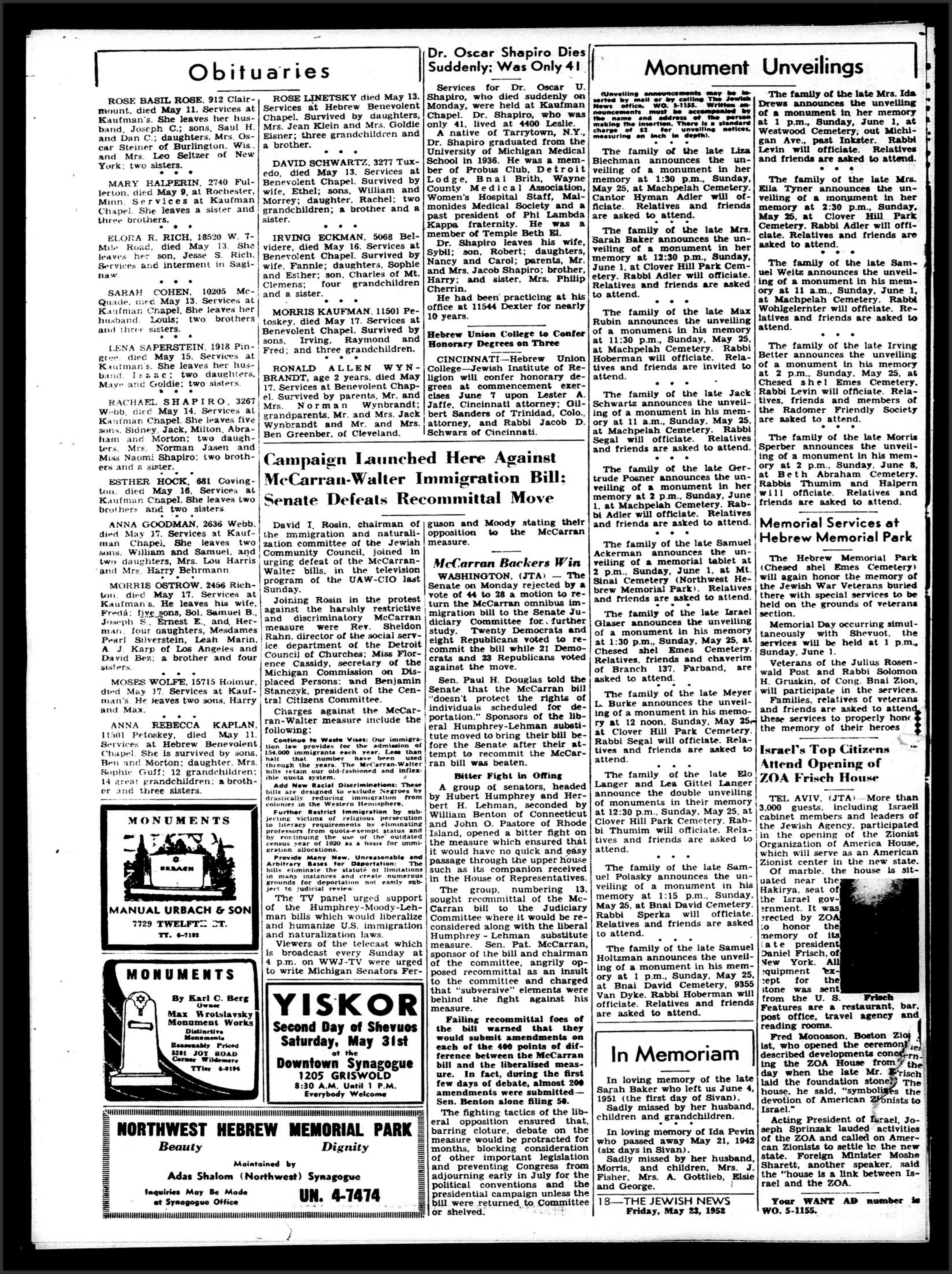 measure would be protracted for who passed away May 21, 1942 of the ZOA and called on Amer-