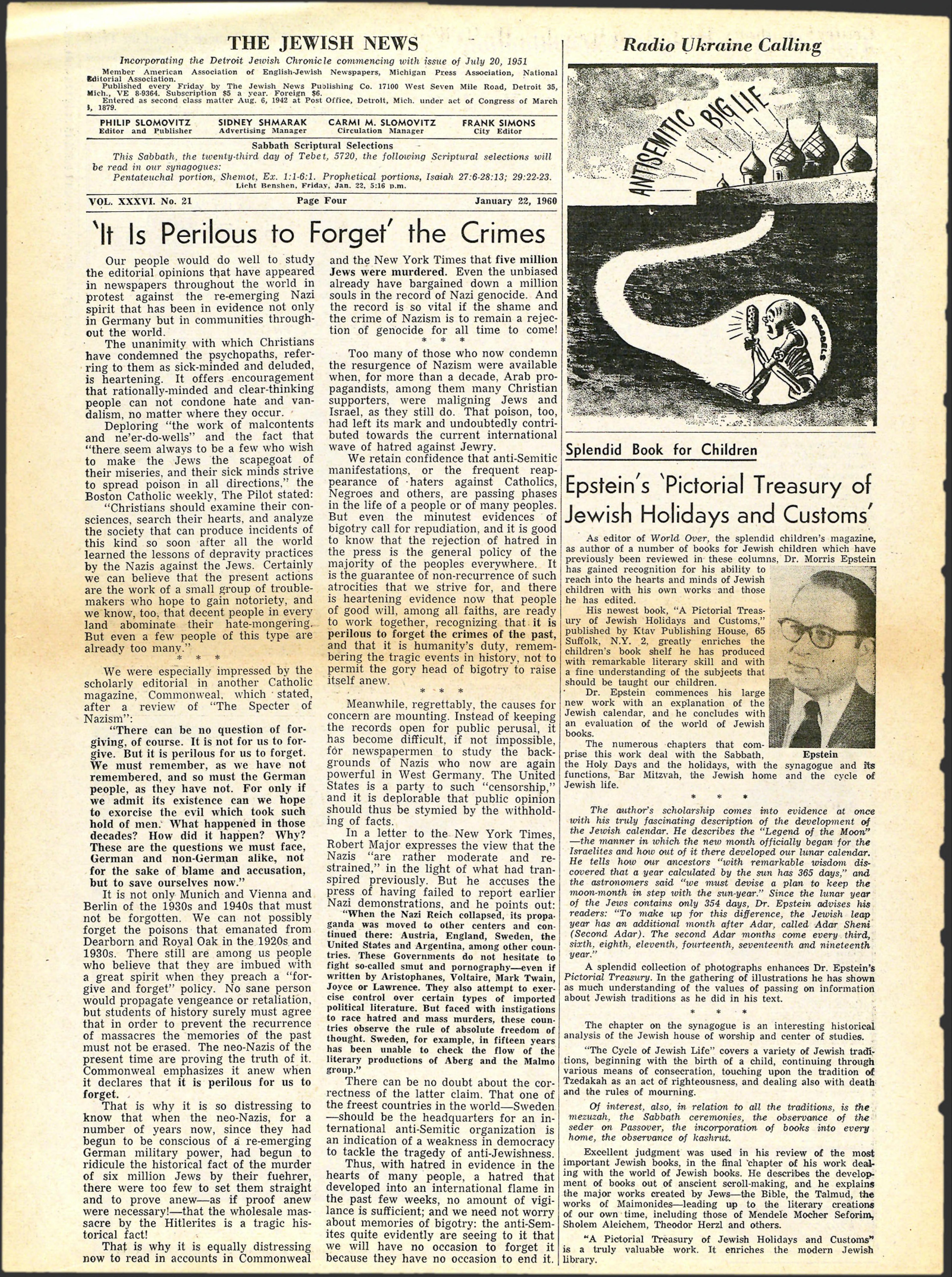Published every Friday by The Jewish News Publishing Co. 17100 West Seven Mile Road, Detroit 35,