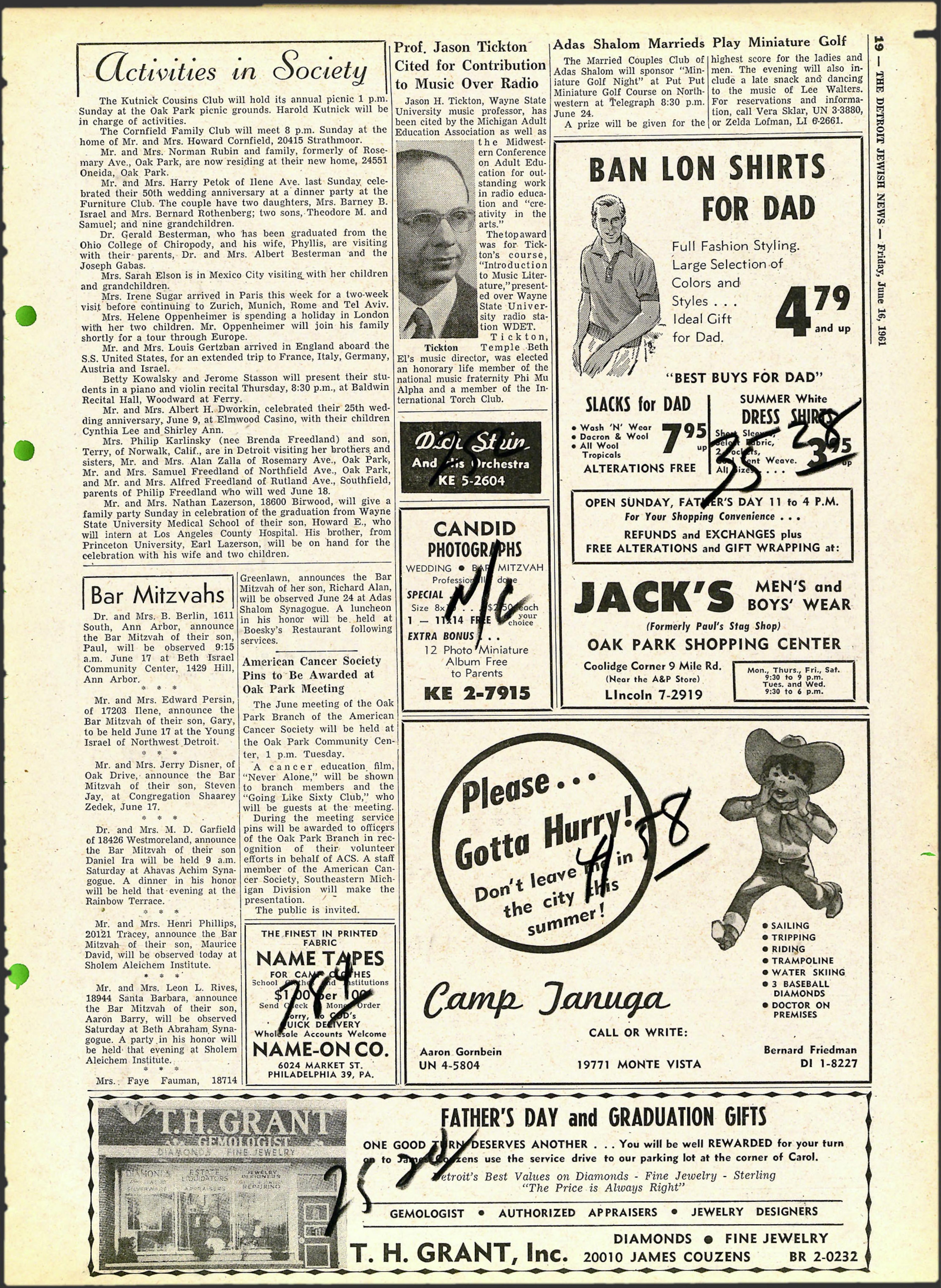 Bar Mitzvah of their son, Gary, Park Branch of the American