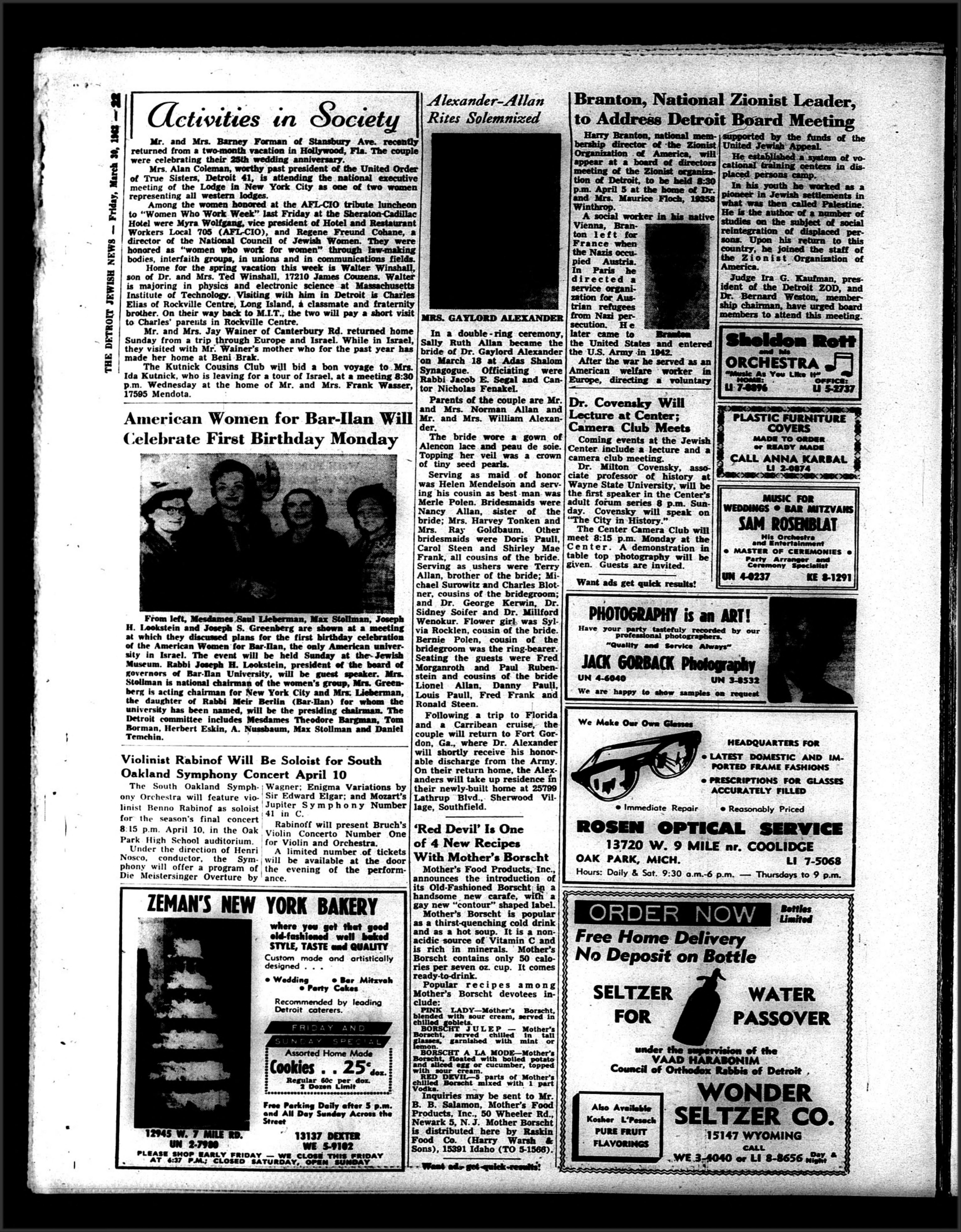 governors of Bar-Ilan University, will be guest speaker. Mrs.