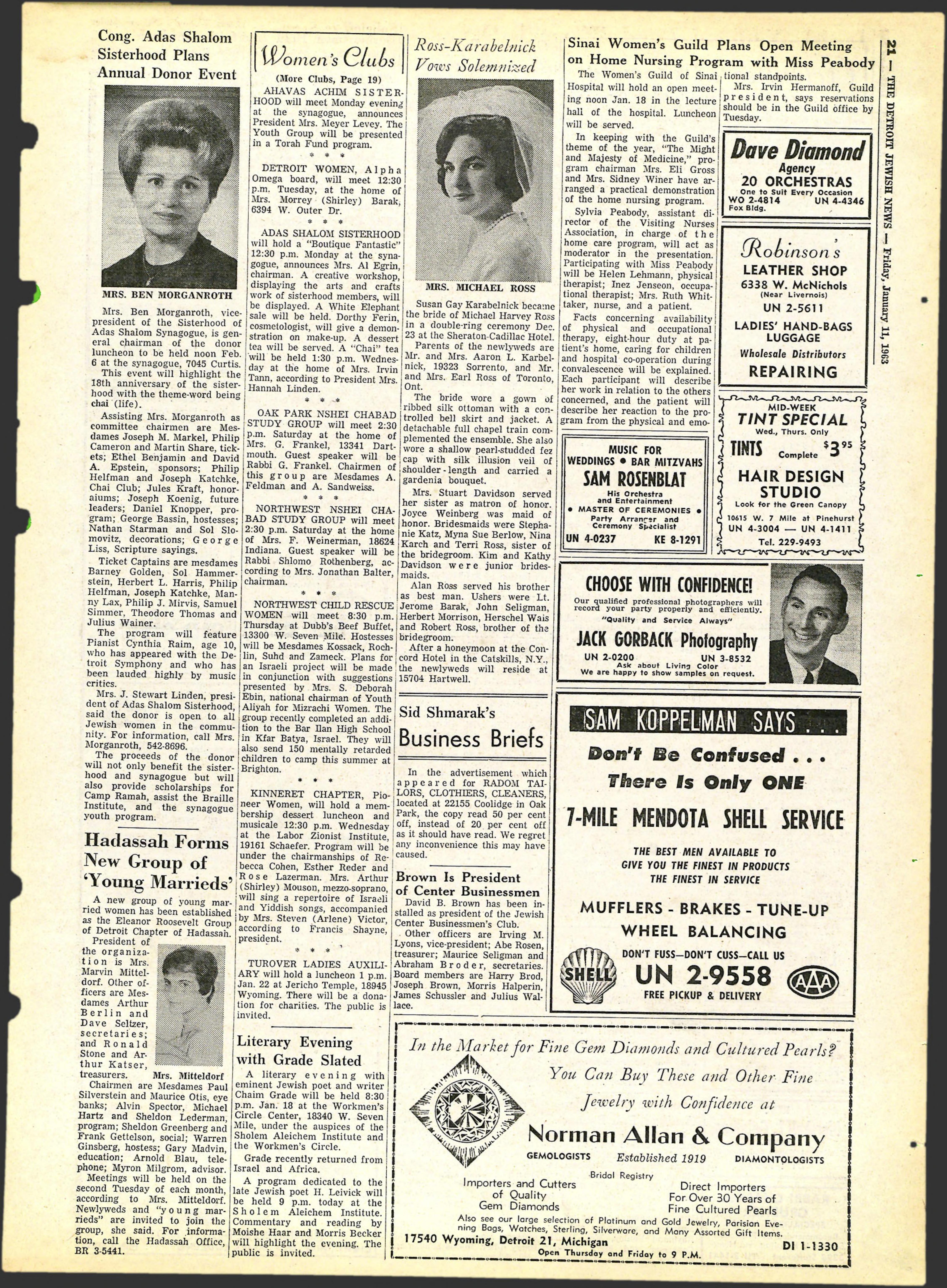 banks; Alvin Spector, Michael p.m. Jan. 18 at the Workmen's I