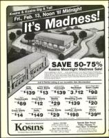 selection and amazed at the prices! Kosins' Moonlight Madness lasts just 12 hours .. .