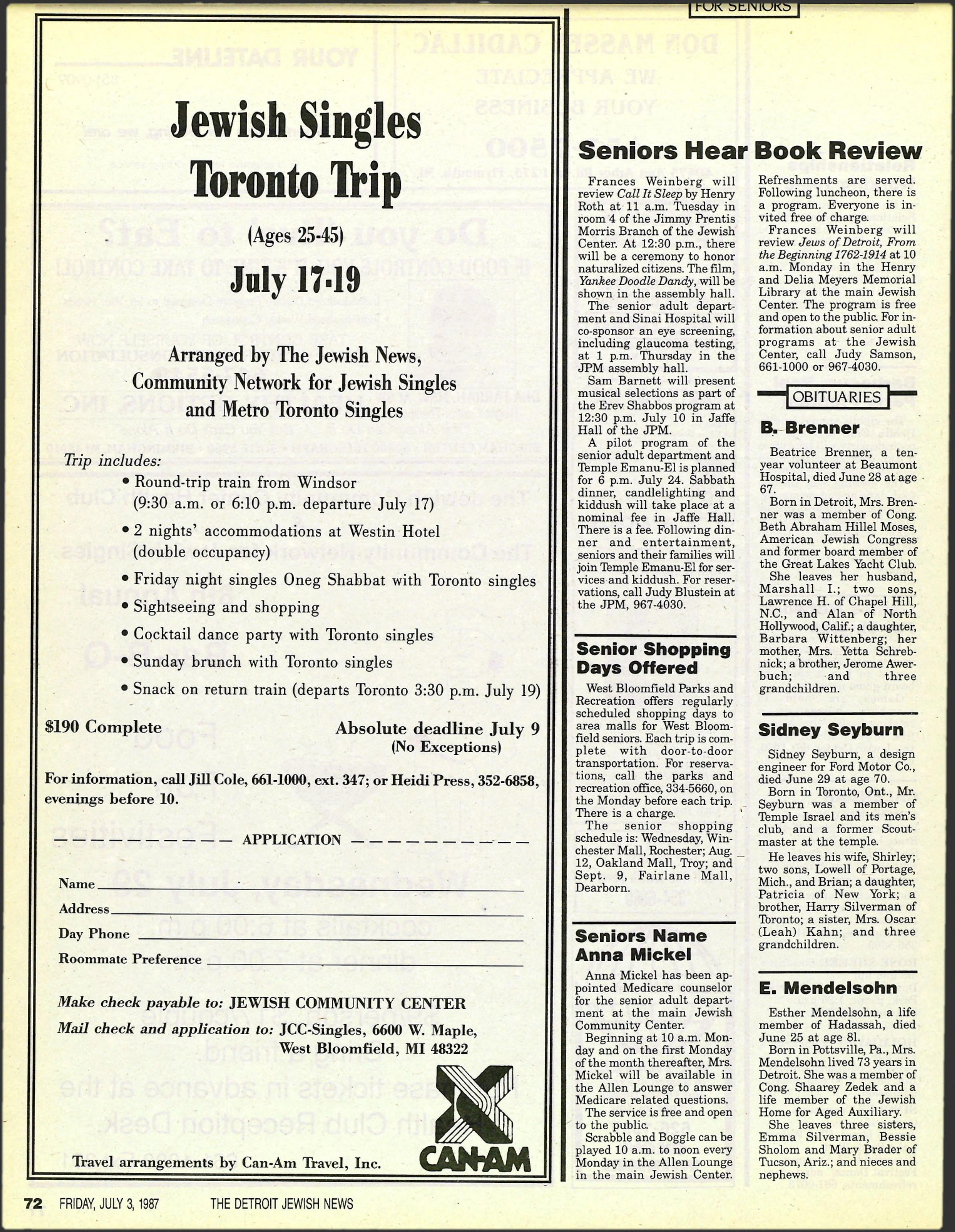 Mail check and application to: JCC - Singles, 6600 W. Maple,