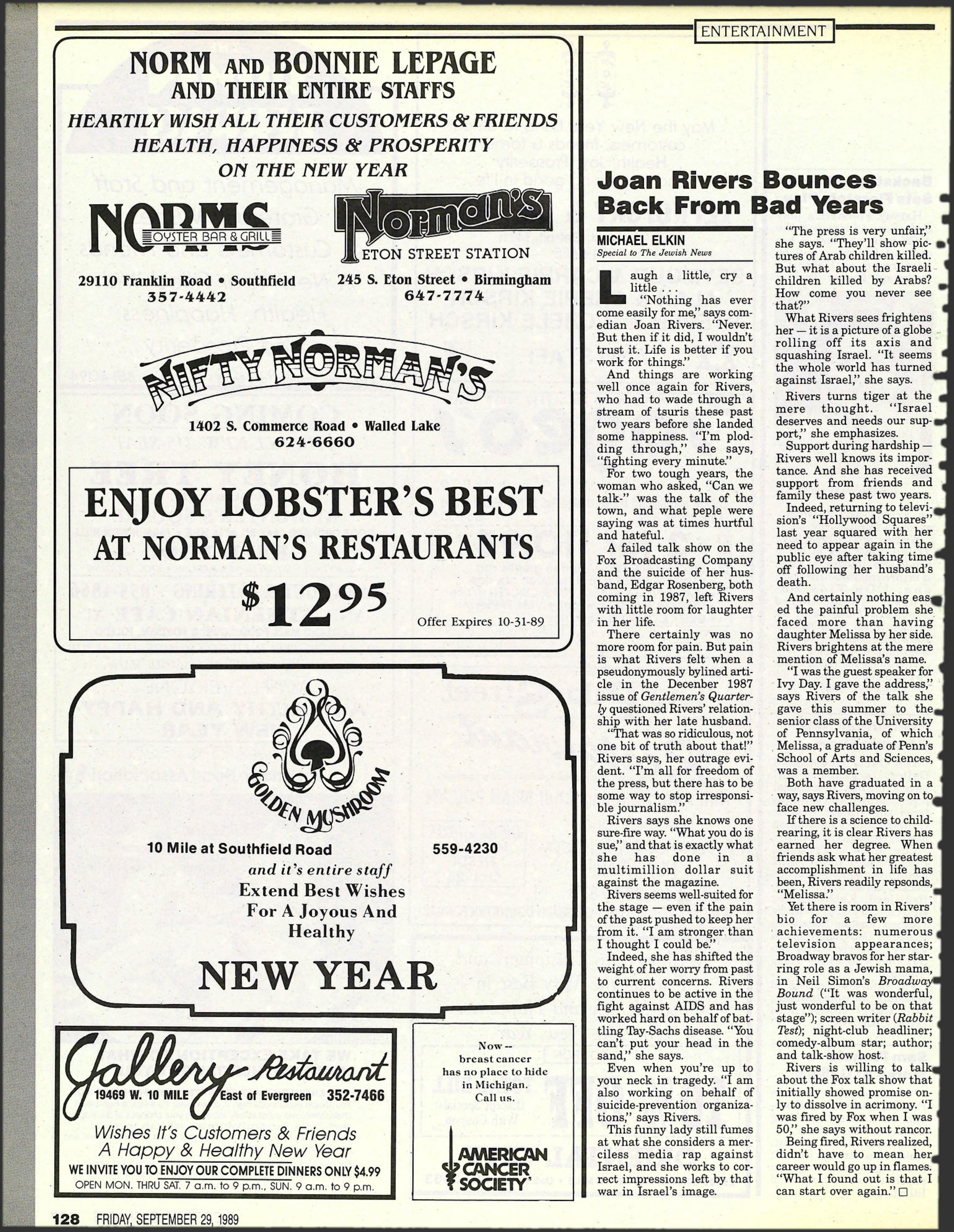 coming in 1987, left Rivers