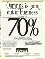 THE NATURE OF THIS SALE, OSMUNS' CHARGES CANNOT BE. ACCEPTED. ALTERATIONS AT COST DURING THIS GREAT SALE. NO