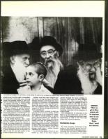 Surrounded by the elders of his community, a young Chasidic boy waits to hear an address by Lubavitch Rebbe Menachem Mendel Schneerson.