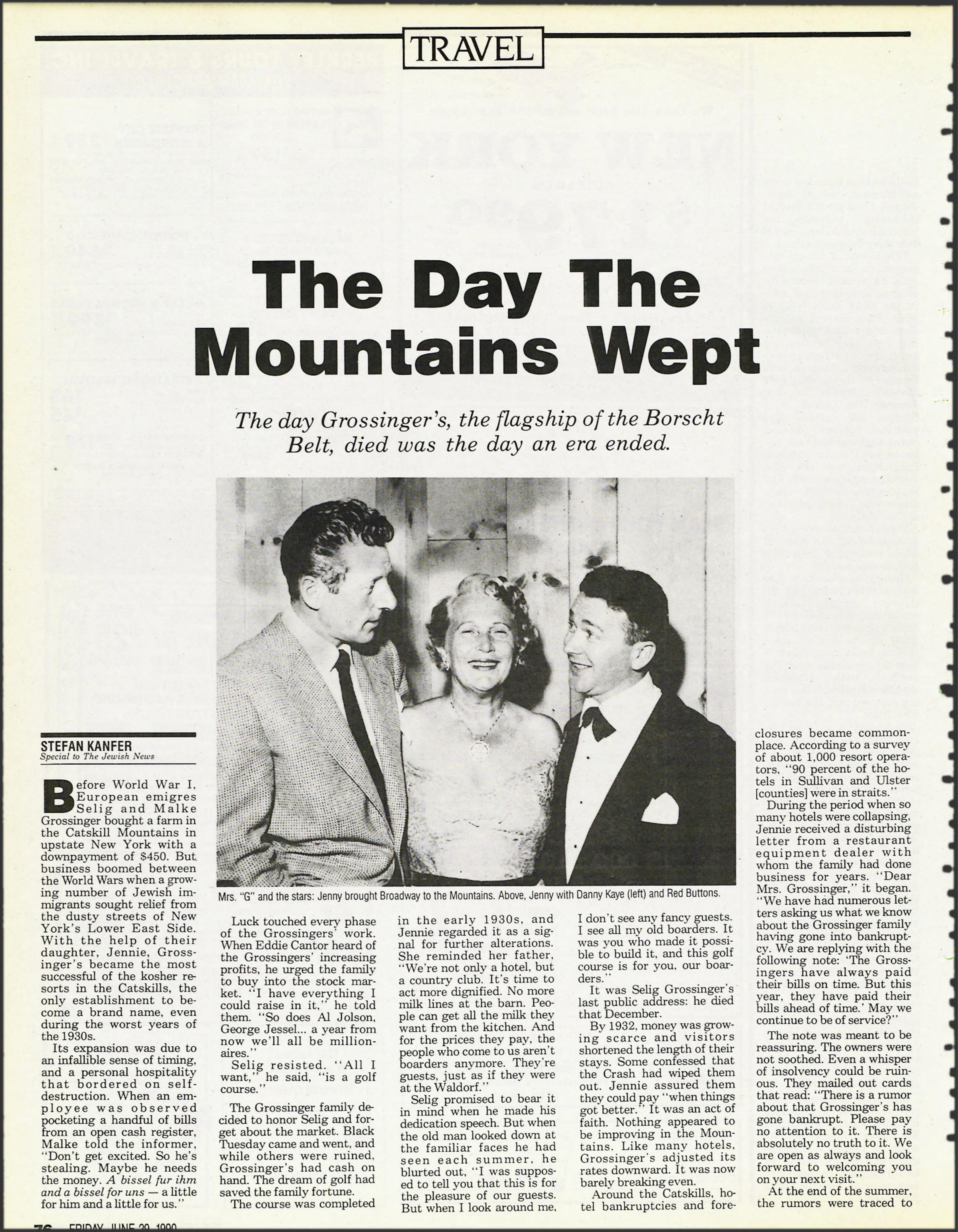 Mrs. "G" and the stars: Jenny brought Broadway to the Mountains. Above, Jenny with Danny Kaye (left) and Red Buttons.