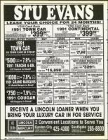 •••iicusf wrier Cash Back directly from Lincoln-Mercury on 1991 models with a 36•month Ford Credit Red Carpet lease: Continental S250; Sable 51000; 36 mos. Customer Cash Back are applied