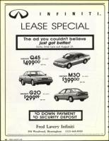 *All lease prices are plus sales and F.E.T. tax and license plates. Q45 is based on MSRP of $40,385, M30 is based on MSRP of $25,885, G20 is based on MSRP of S19,835. Based on 36 mo. lease. Sale ends Aug. 31, 1991.