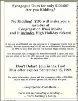 of 1992 for only $100 and we will include High Holiday tickets.