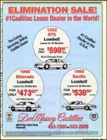 Lease payments based on approved credit on 30 mo. closed end lease. 30,000 mile limitation. 'Seville: Lessee has option to purchase at lease end for $20,054.49. No money down, refundable security deposit of $575 plus 1st month payment of $559.93, license &