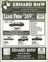 year, $.15 per mile over limit. Option to purchase at end of lease term at $14,199 for 318i, $18,688 for 325ia, $21,092 for 525i, $26,216 for 530ia, and $34,400 for 740ia. Total payments equal to ad price plus 6% times 36. See deal-