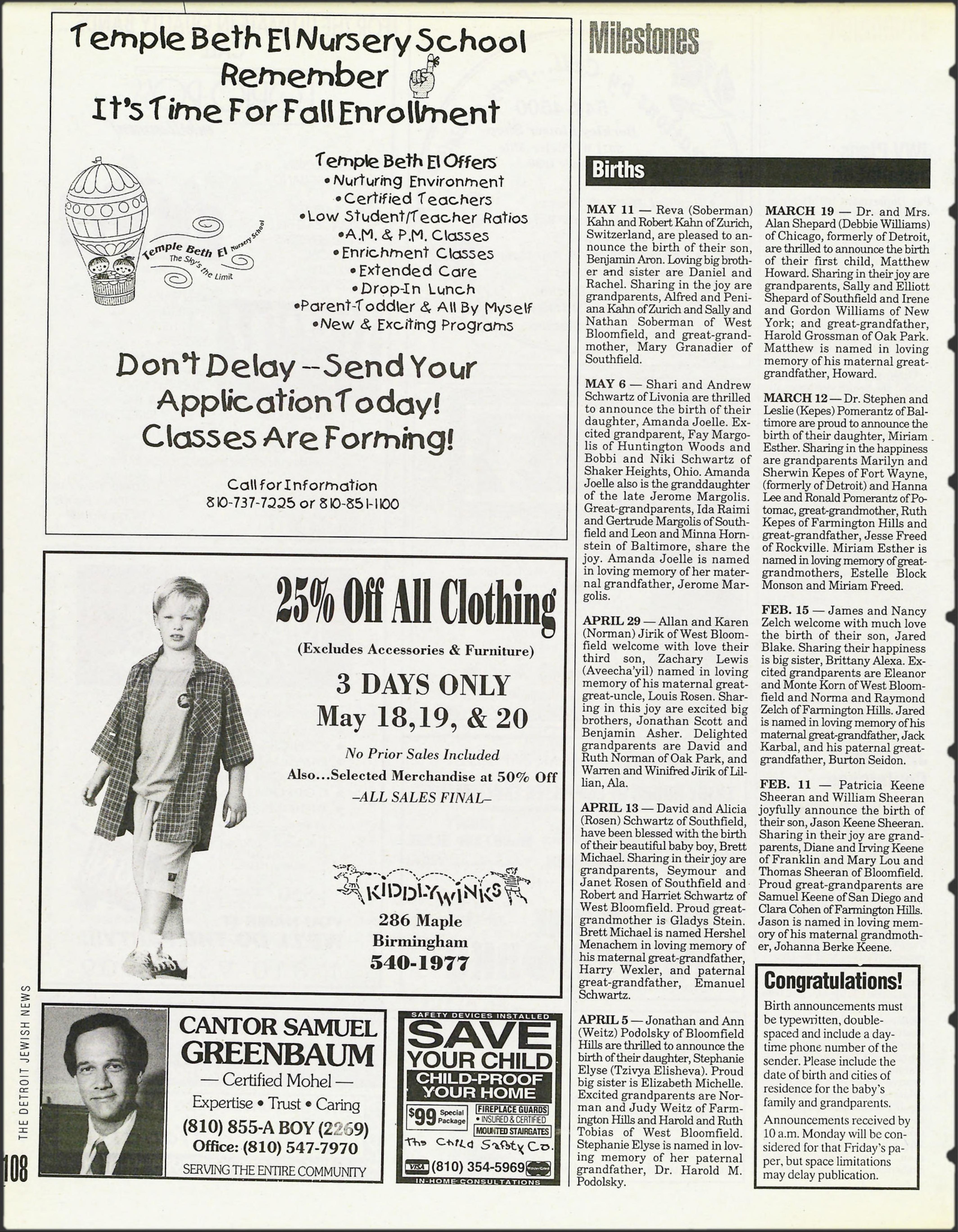 West Bloomfield. Proud great- Clara Cohen of Farmington Hills.