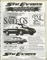 `Monthly payment based on a 24 Month lease with $1,000 down, tax & plates extra. '96 Sable GS,