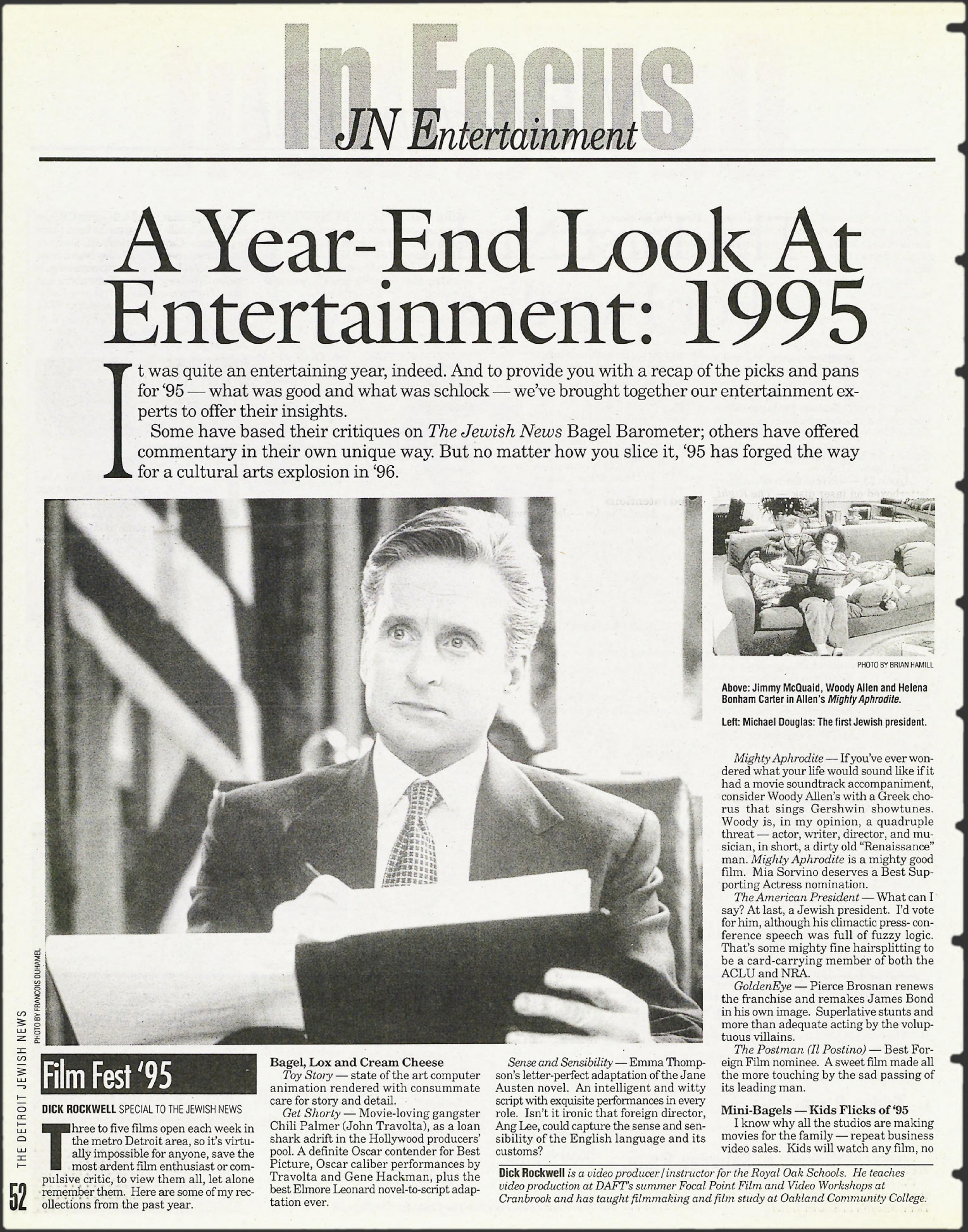 for '95 — what was good and what was schlock — we've brought together our entertainment ex-