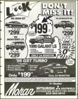 on cash down, 10% down, 10,000 miles on Galant & Eclipse. $3,000.00 on 3000GT, Montero & Diamante. 12,000 miles per year limitation. 154 per mile for excess miles. Option to
