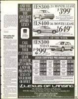 ***1993 ES300, 36 mo., 45,000 mi. at $299 + tax x 36 mo. equals total payment, $1,799 down, 1st payment acquisi-