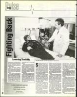 Elaine Weiss talks to Dr. Jared Klein while donating her own stem cells.