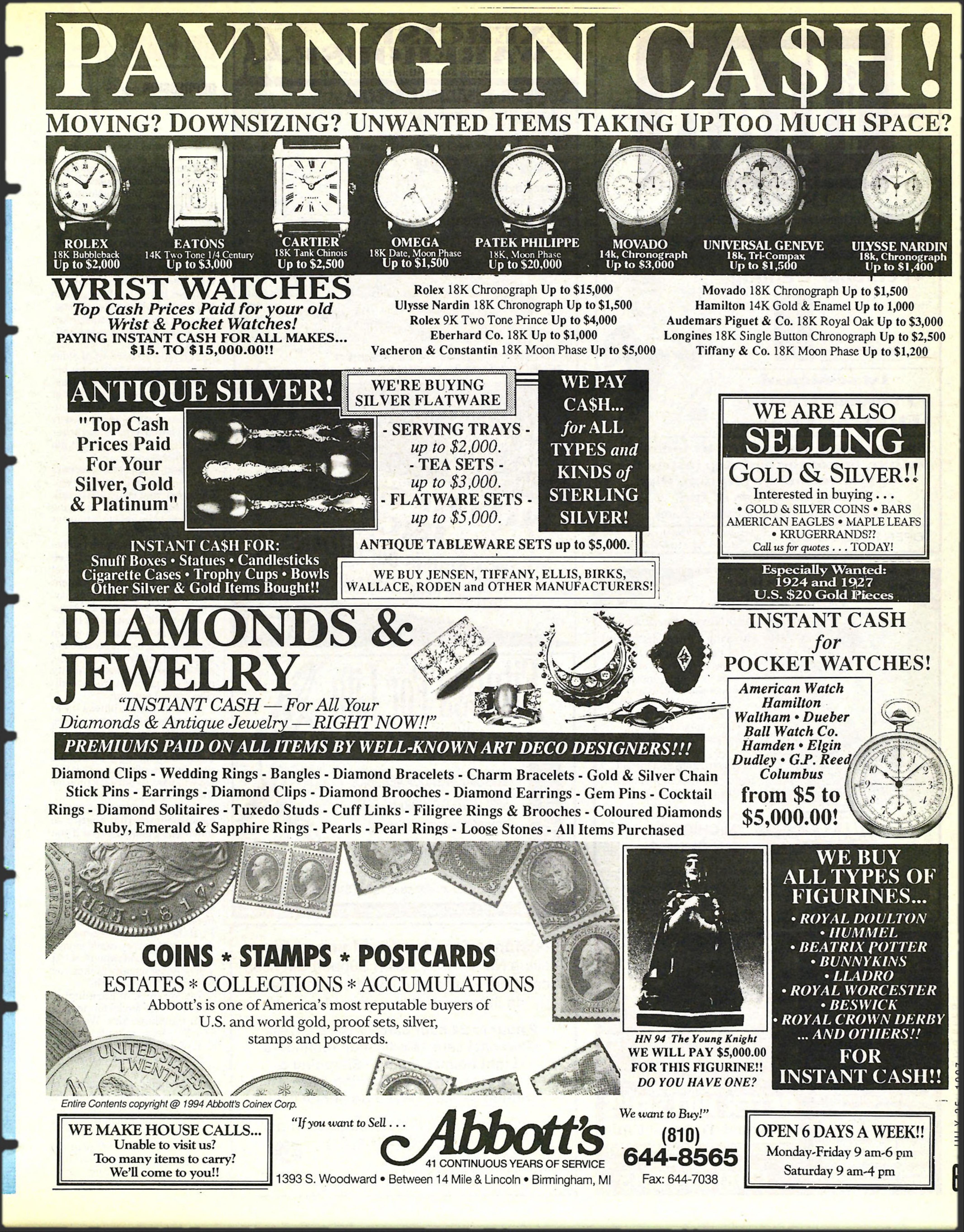Entire Contents copyright 0 1994 Abbott's Coinex Corp.