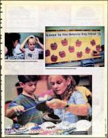 Hannah Rose Alexander tries on a yarmulke as Caryn Shapiro watches.