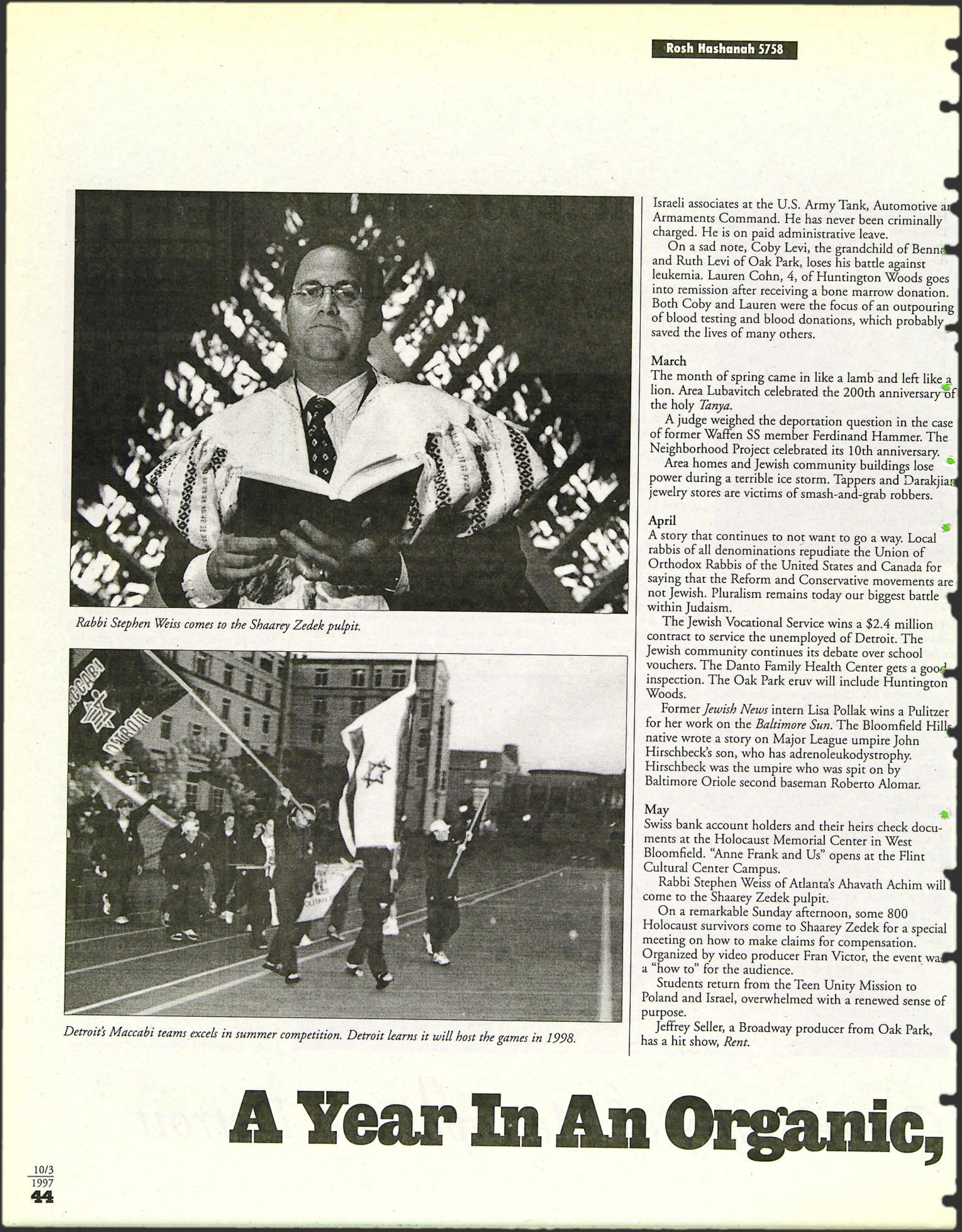 Detroit's Maccabi teams excels in summer competition. Detroit learns it will host the games in 1998.