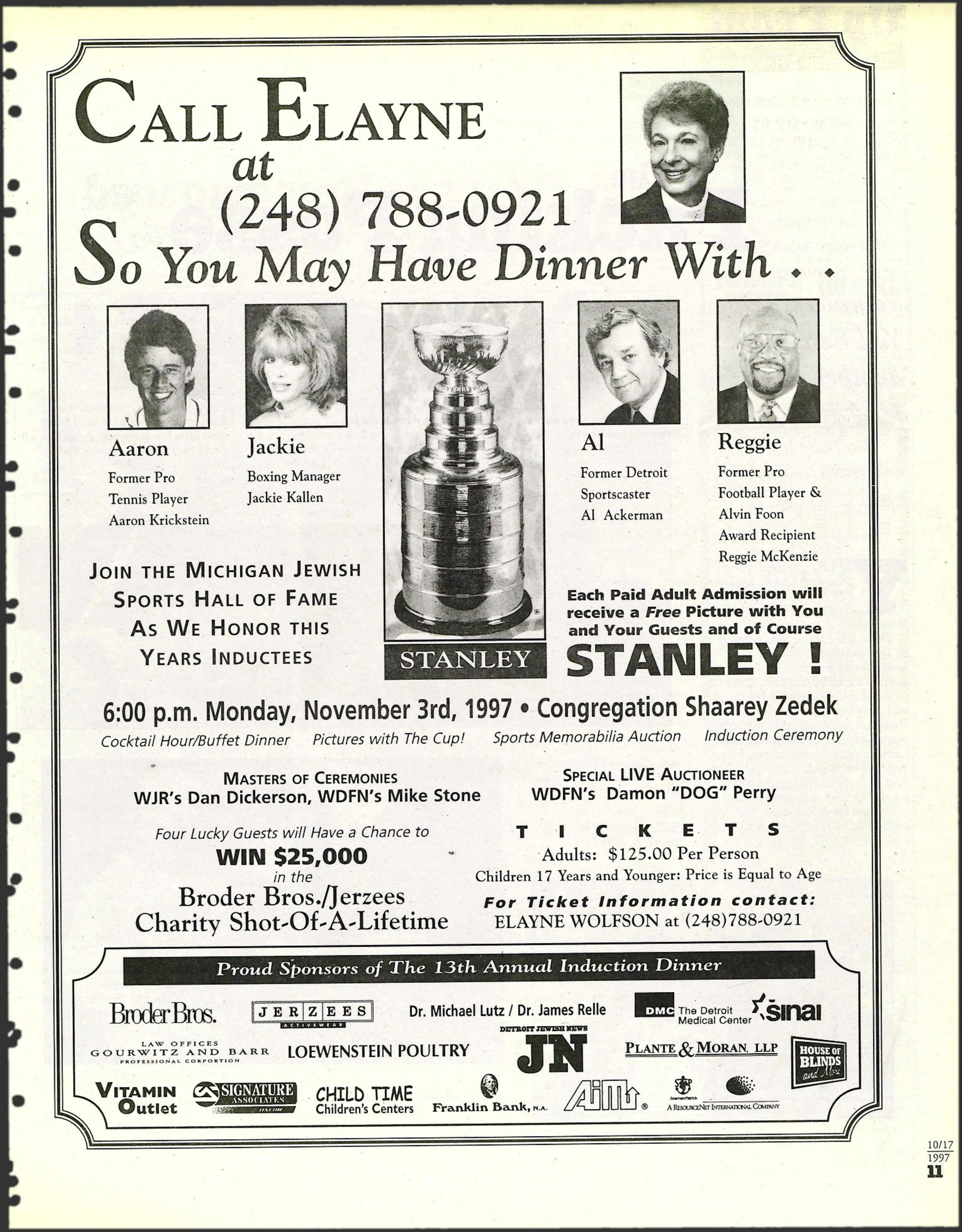 6:00p.m. Monday, November 3rd, 1997 •• Congregation Shaarey Zedek