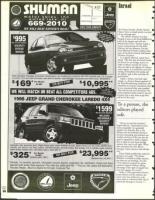 cassette, rear defrost, rear wiper washer, overhead console, anti-lock brakes, dual airbags, 4.0L. 6 cylinder, power steering,