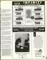'36 too. closed-end lease based on approved credit Due at inception: 130 $1000 down, QX4 $1500 down, J30 S1500 dwn. Q45 $3500 down. 1st pay. doc. acq. fee title, license, ref. sec. dep. & applicable taxes.