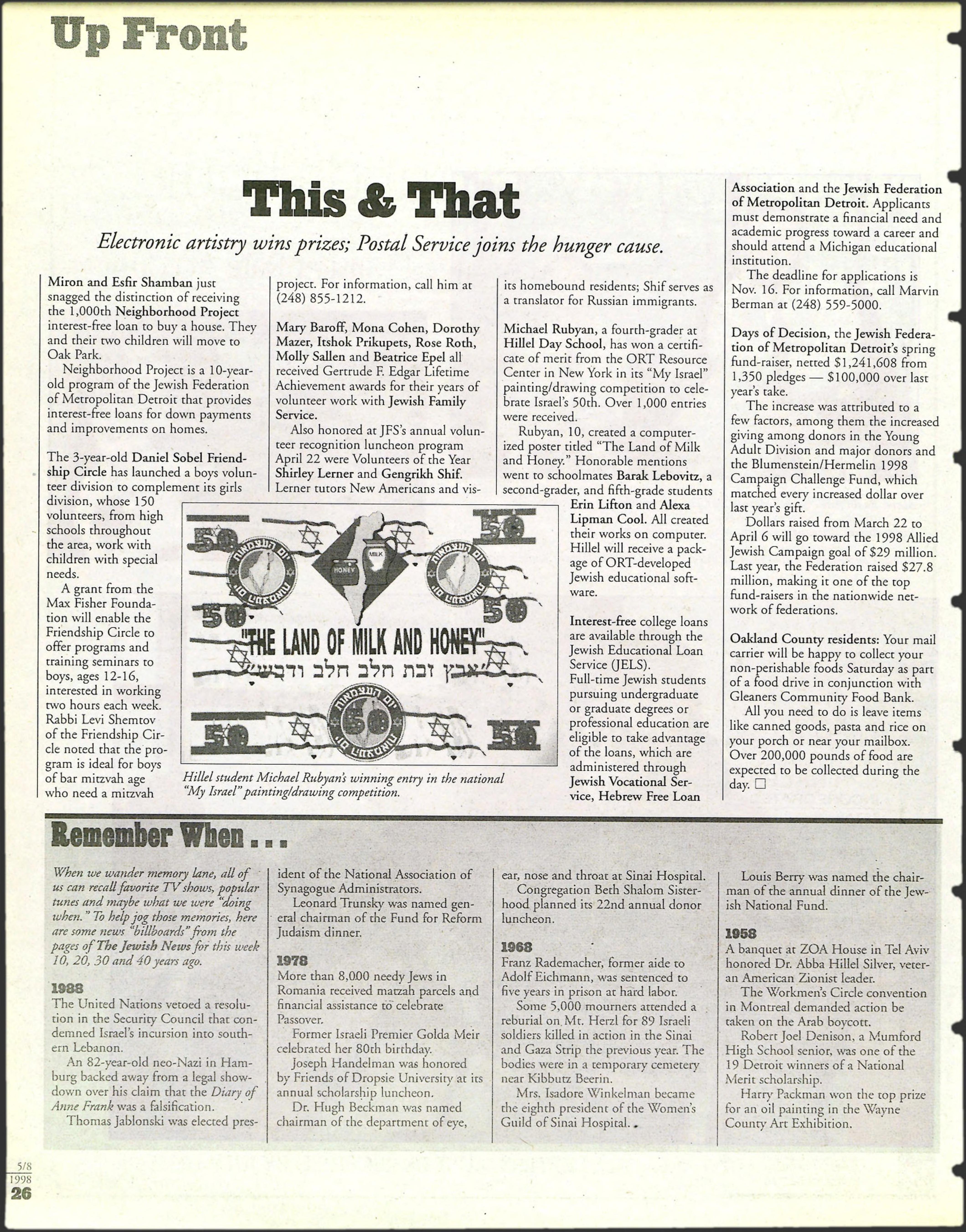 Electronic artistry wins prizes; Postal Service joins the hunger cause.