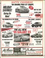 * 36 & 42 month lease based on approved credit. Plus tax and plate fee. Rebates assigned to dealer. • Tier credit of A, B & C through MMCA on purchase only up to 48 months through Dec. 24th, 1998. **All rebates assigned to dealer. Plus tax. title and plates.