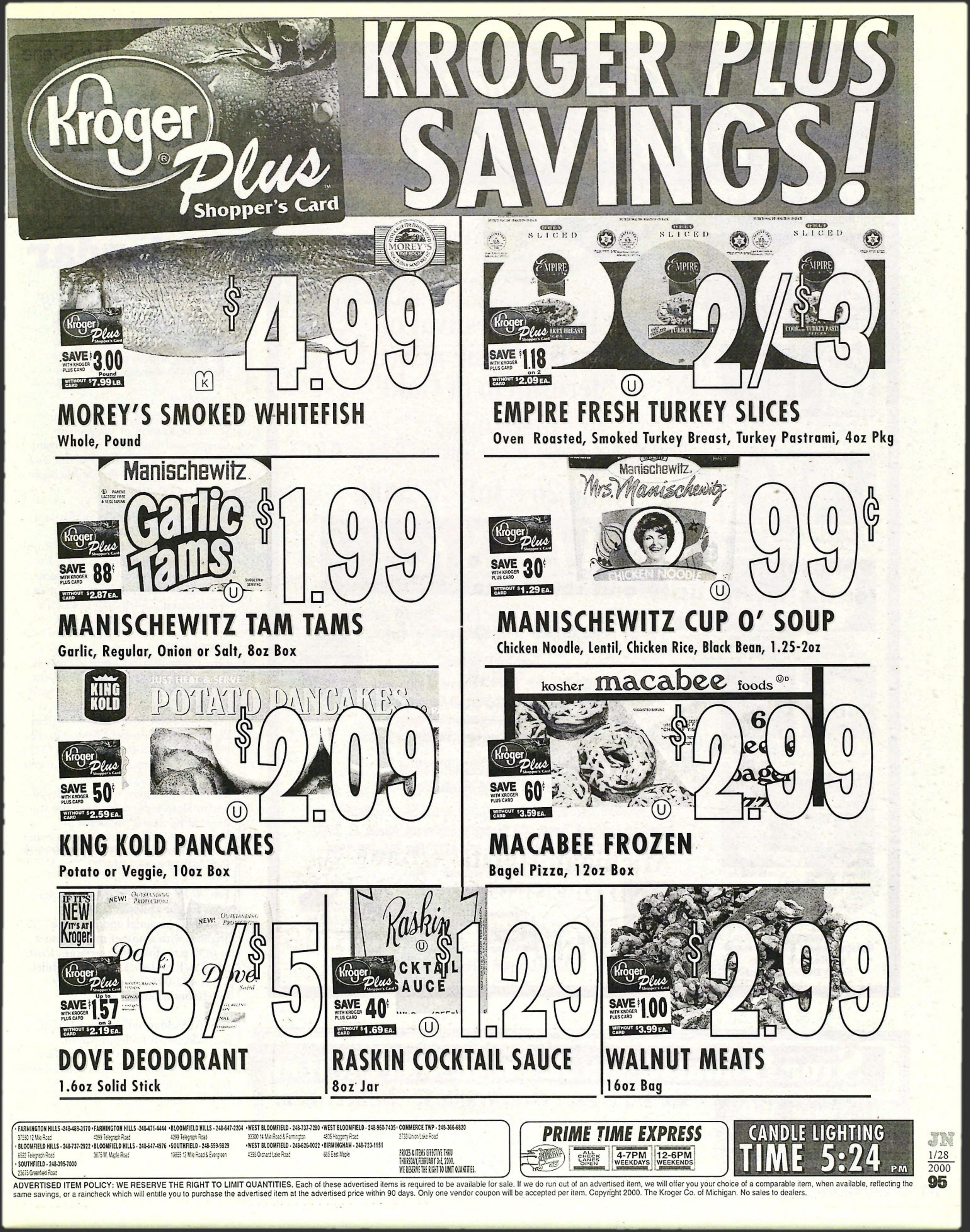 same savings, or a raincheck which will entitle you to purchase the advertised item at the advertised price within 90 days. Only one vendor coupon will be accepted per item. Copyright 2000. The Kroger Co. of Michigan. No sales to dealers.
