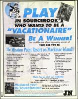 weekend for 2 at Mission Point on Mackinac Island. Weekend includes 2 meals per day and has a volue of S750 per package. Taxes, if any, are the responsibility of the winner. Travel