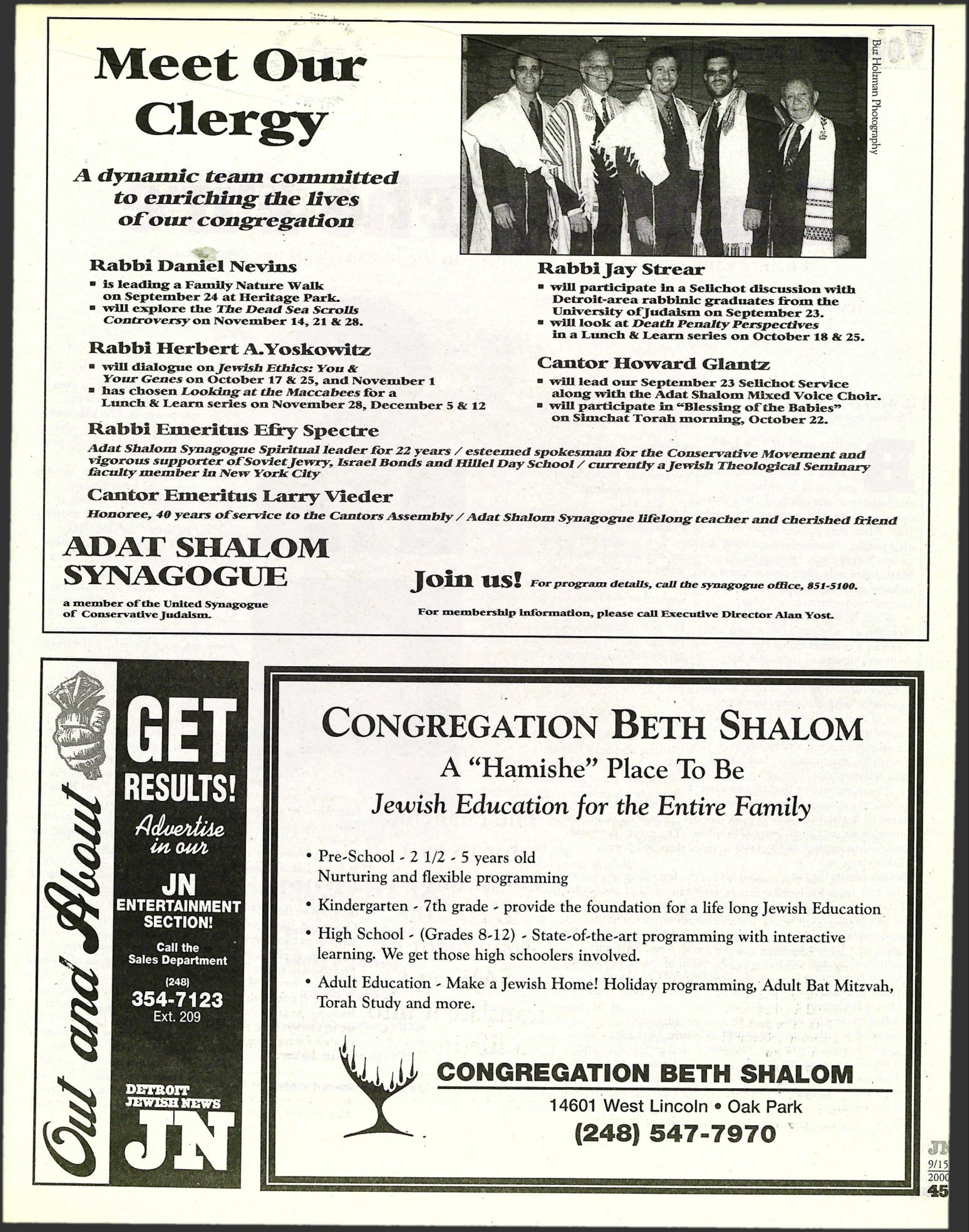 Adat Shalom Synagogue Spiritual leader for 22 years / esteemed spokesman for the Conservative Movement and