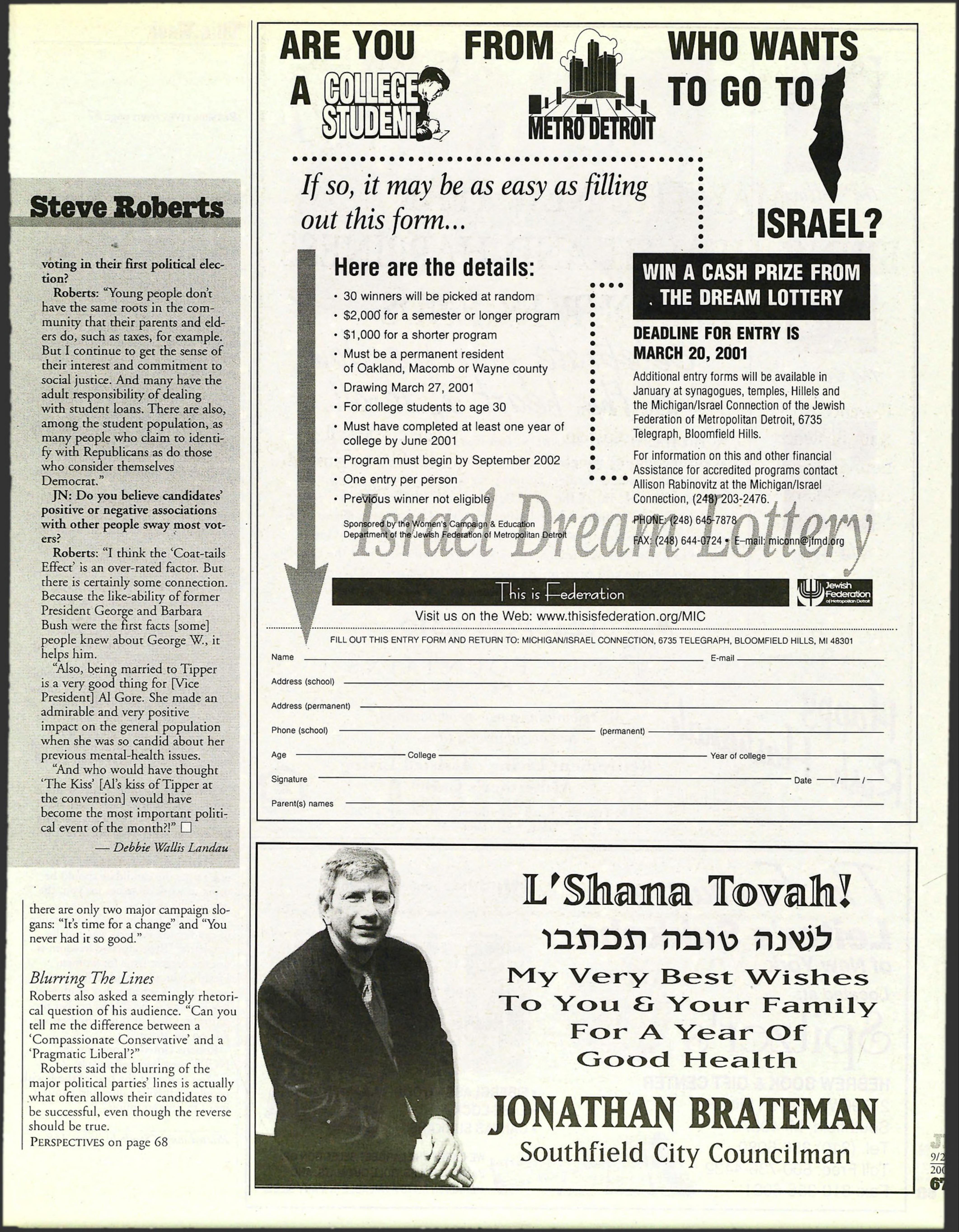 FILL OUT THIS ENTRY FORM AND RETURN TO: MICHIGAN/ISRAEL CONNECTION, 6735 TELEGRAPH, BLOOMFIELD HILLS, MI 48301