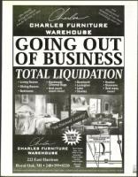 All inventories must be liquidated. No sales to wholesale dealers. Regular, original, or compare at prices may not have resulted in sales. All manufacturer's warranties in full effect.