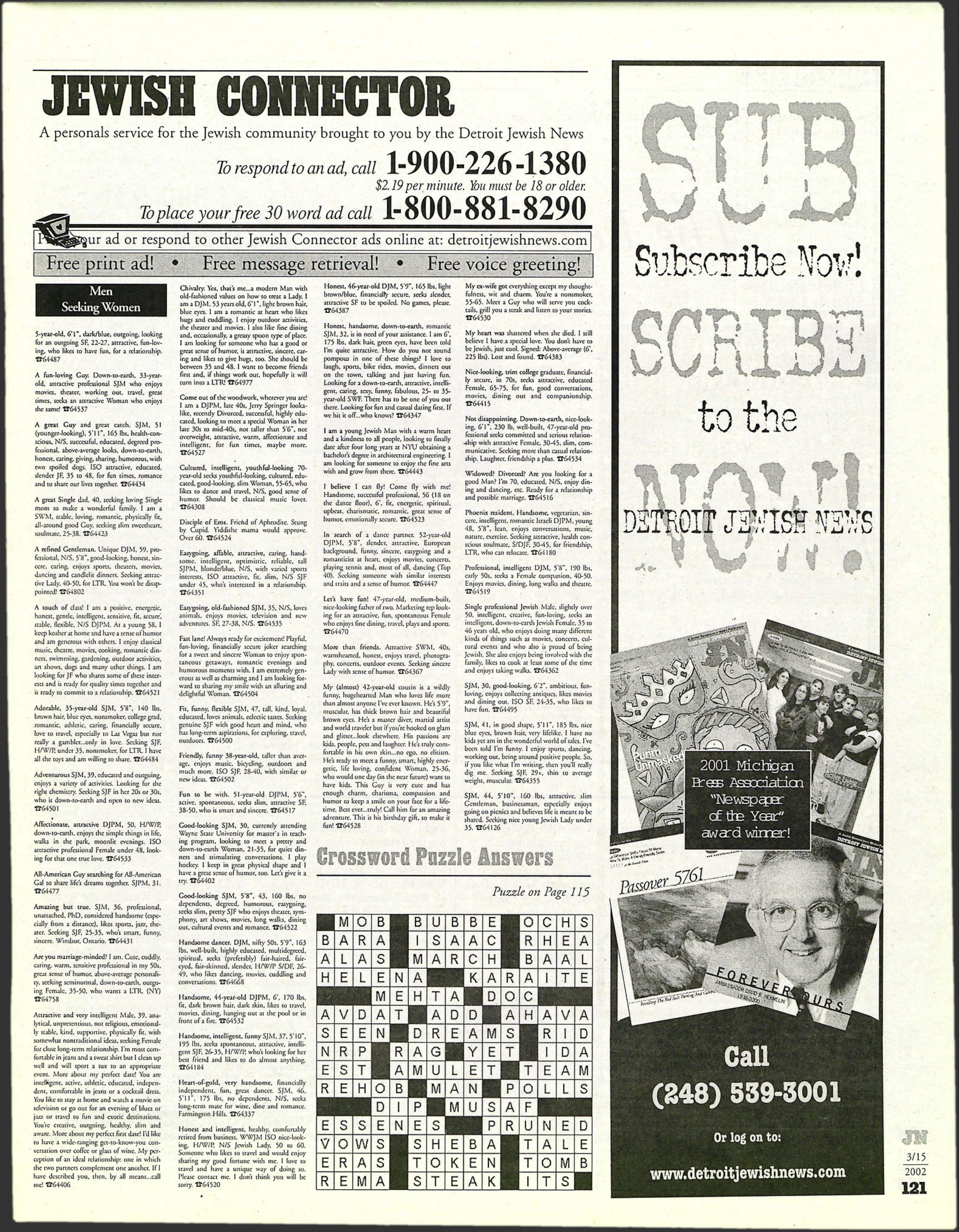 A personals service for the Jewish community brought to you by the Detroit Jewish News