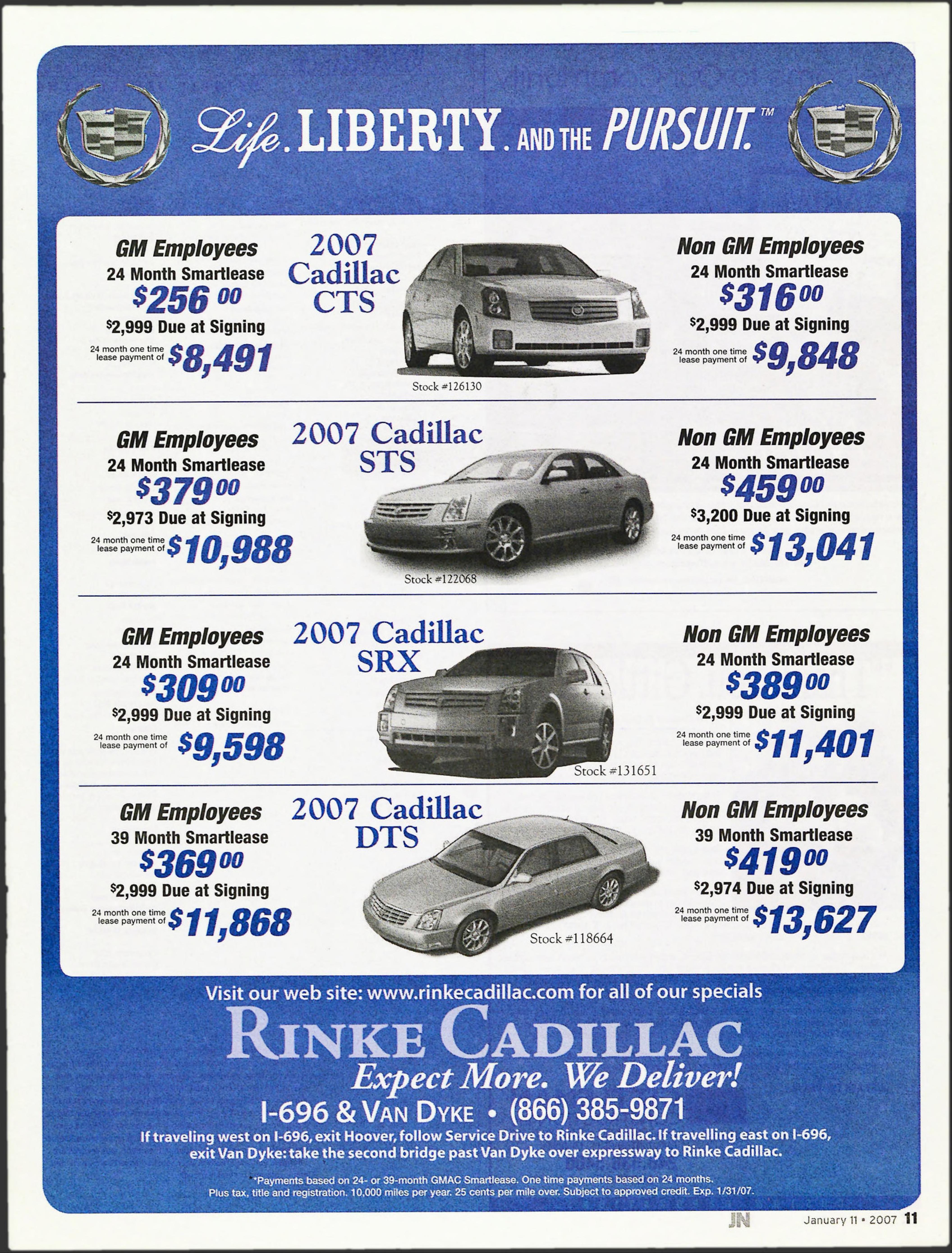 Plus tax, title and registration. 10,000 miles per year. 25 cents per mile over. Subject to approved credit. Exp. 1 /31/07.