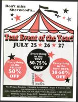 Tent Sale Hours: Friday 10-9 Saturday 10-9 Sunday 10-6