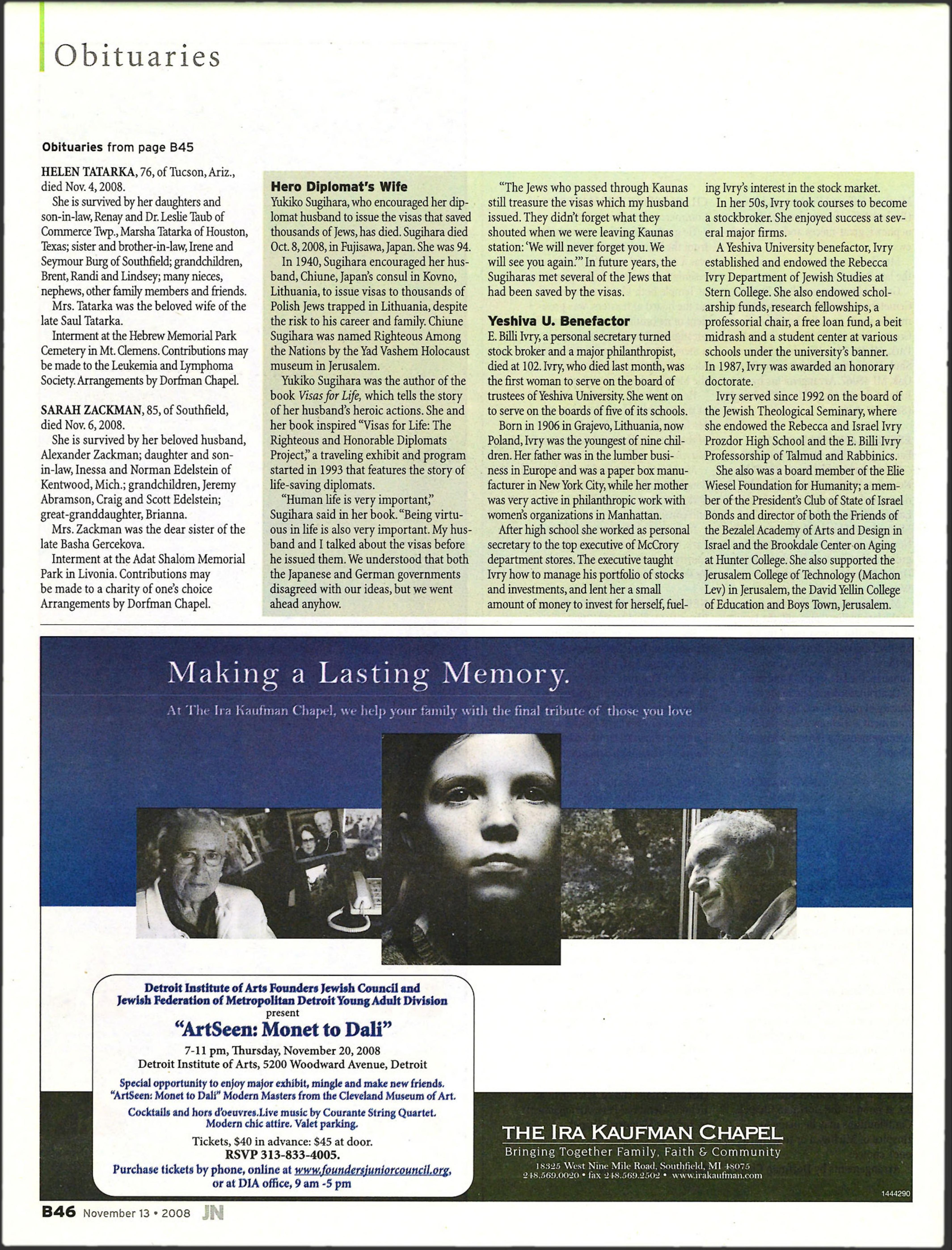 she endowed the Rebecca and Israel Ivry