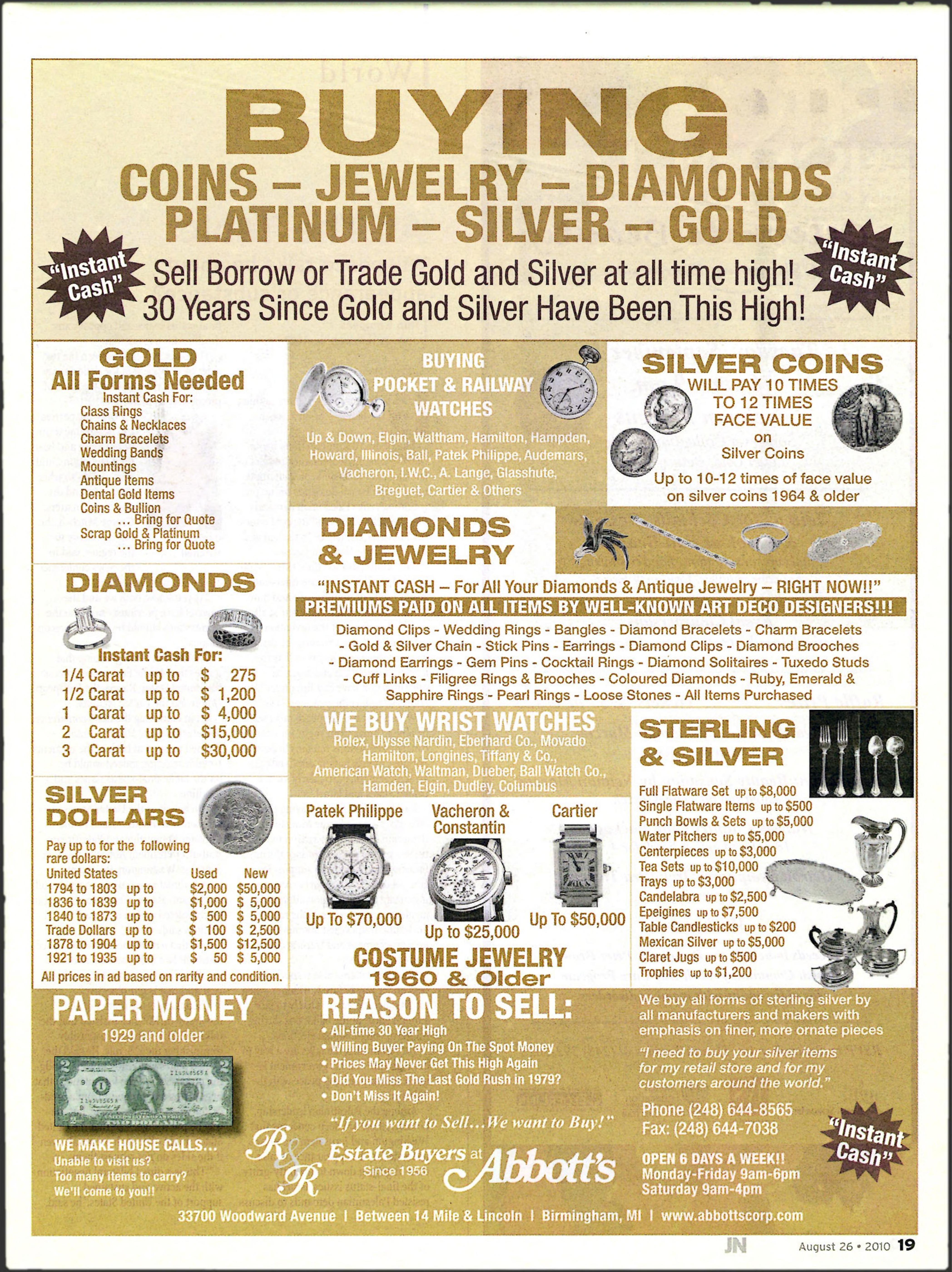 "INSTANT CASH — For All Your Diamonds & Antique Jewelry — RIGHT NOW!!"