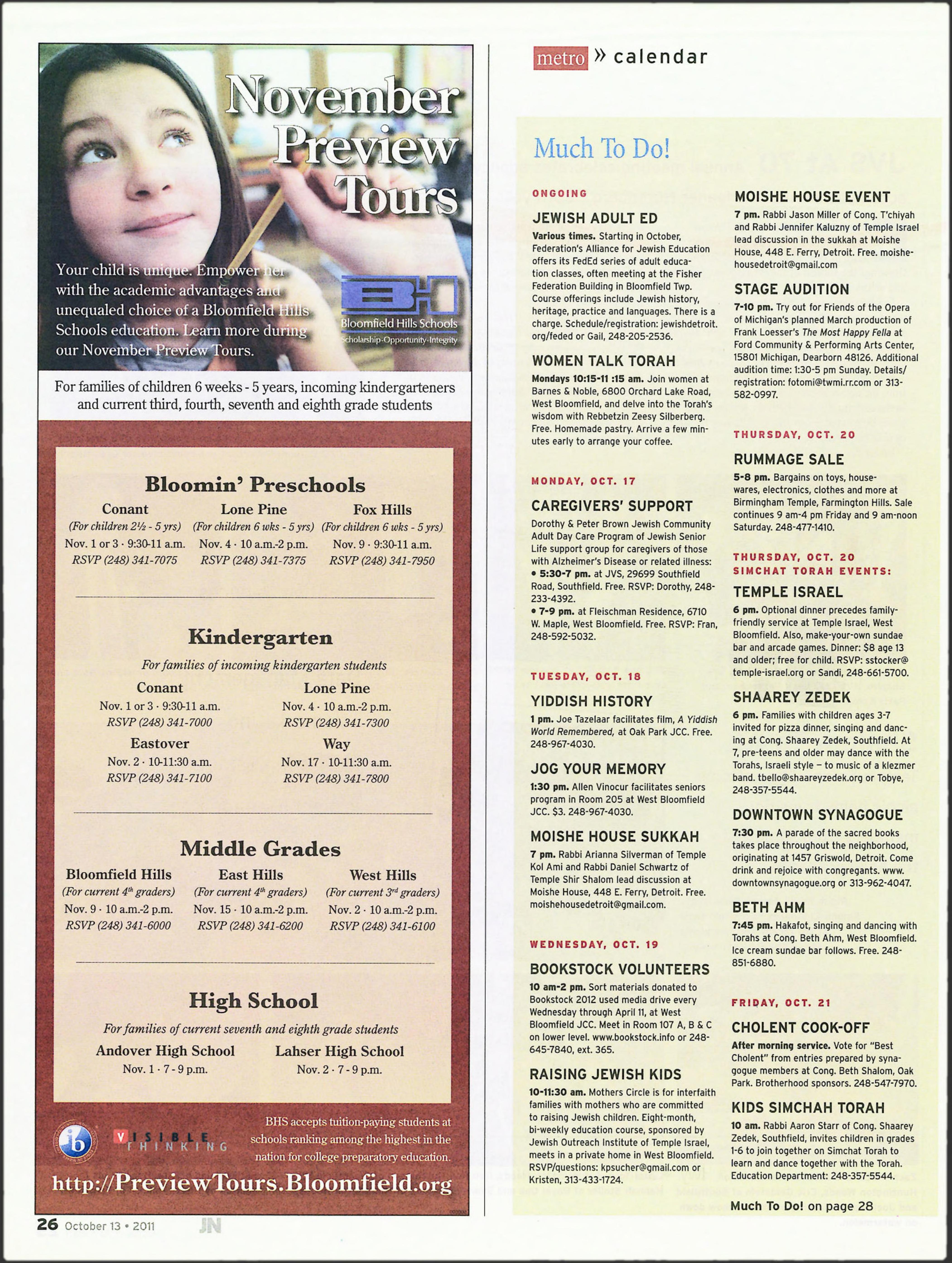 • 5:30-7 pm. at JVS, 29699 Southfield