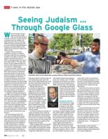 Jason Miller checks out the Google Glass at Campus Martius as Rabbi Yisrael Pinson observes.