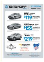 2015 Honda CRN LX 4WD. Stock #T604373. Lease $219 per month for 36 months. $1,999 down. Two or more units available at this price. 36,000 Mile Closed End Lease. Price includes destination and handling. Plus