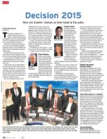 Posing at the Feb. 26 Israeli election debate hosted by Israel's Channel 2 television are, standing: news anchor Yonit Levi, Shas
