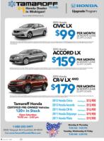 2015 Honda Civic LX Auto. Stock# T067749. Lease $99 per month for 36 months. $2,499 down. Two or more units available at this price. 36,000 Mile Closed End Lease. Price includes destination and handling. Plus