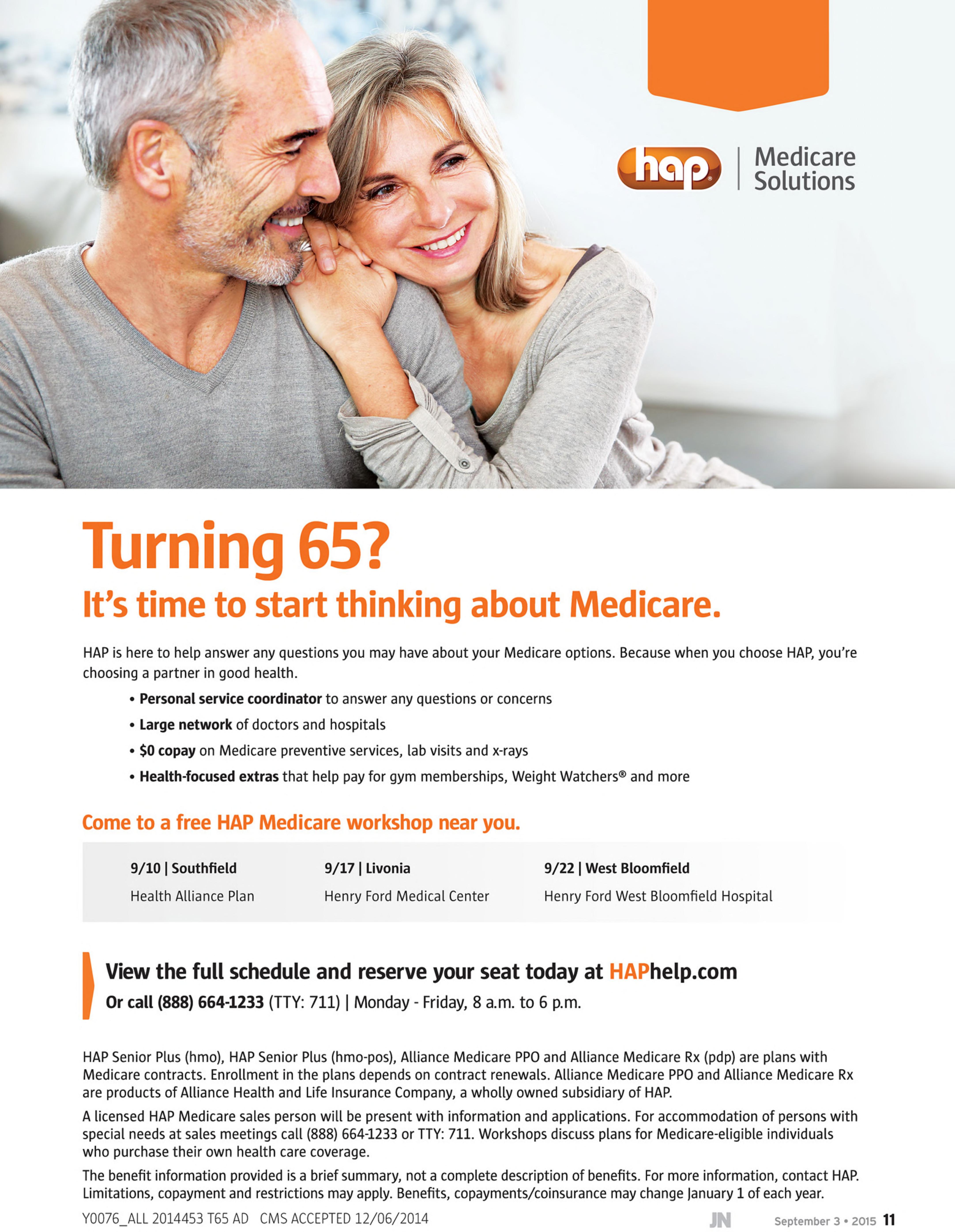 A licensed HAP Medicare sales person will be present with information and applications. For accommodation of persons with