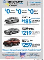 2015 Honda Civic LX Auto. Stock# T087220. Lease $185 per month for 36 months. $0 down. Two or more units available at this price. 36,000 Mile Closed End Lease. Price includes destination and handling. Plus 6%