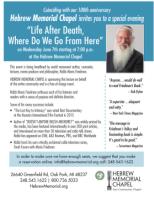 HEBREW MEMORIAL CHAPEL is sponsoring this lecture on behalf